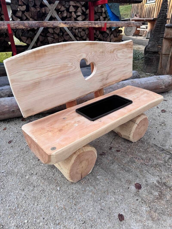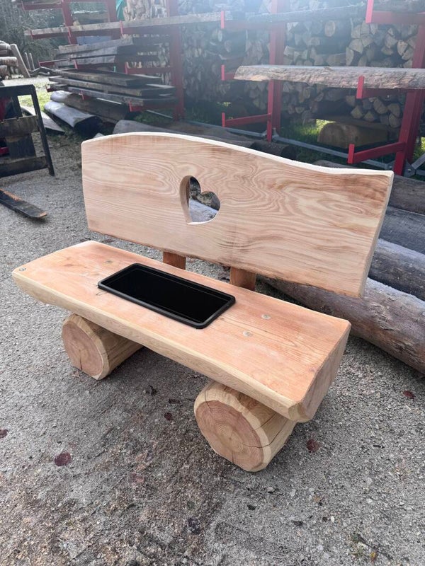 Handgefertigtes Blumenbankerl aus robustem, wetterbeständigem Lärchenholz. Ideal für Garten, Terrasse oder Eingangsbereich. Stabil, langlebig und mit natürlicher Holzoptik.
